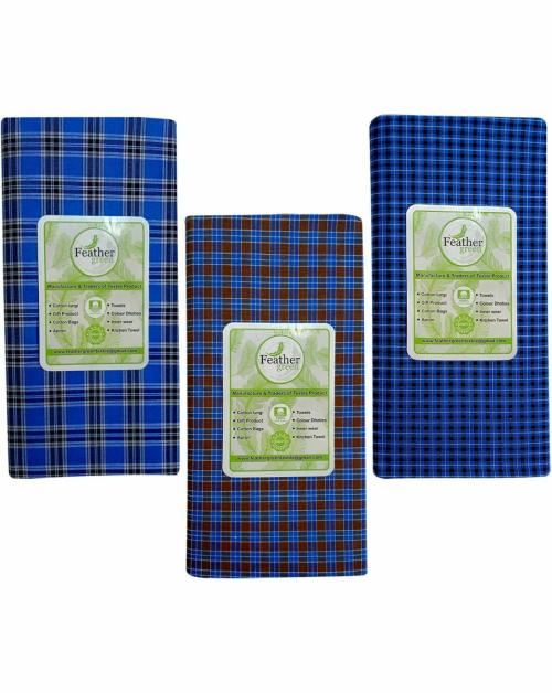 Feather Green Men Multicolor Checkered Pure Cotton Lungi - Free Size (Pack of 3)
