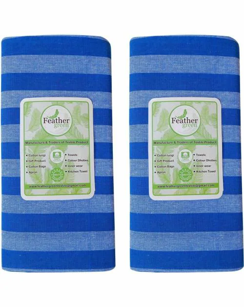 Feather Green Men Multicolor Striped Pure Cotton Lungi - Free size (Pack of 2)