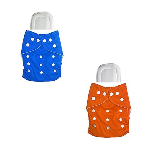 feelitson Unisex Baby Cloth Diaper Reusable Washable Adjustable 2 Diapers (Blue,Orange) & 2 White Insert Free Size Age - (3 Months to 3 Years) Weight - (5-17 Kg)