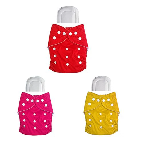 feelitson Unisex Baby Cloth Diaper Reusable Washable Adjustable 3 Diapers (Red,Pink,Yellow) & 3 White Insert Free Size Age - (3 Months to 3 Years) Weight - (5-17 Kg)