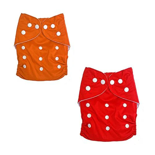 feelitson Unisex Baby Cloth Diaper Reusable Washable Adjustable With 1 Orange 1 Red Diaper Free Size Age - (3 Months to 3 Years) Weight - (5-17 Kg)