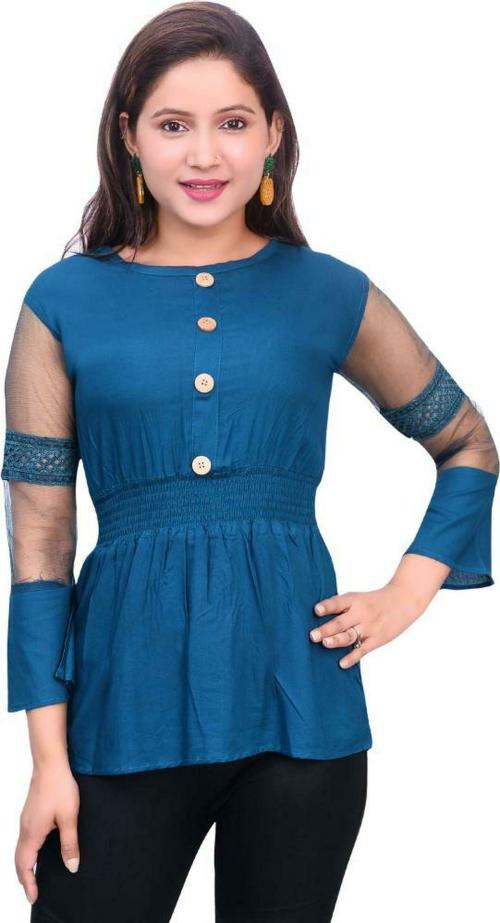 Fikroo Girls Blue Self Design Cotton Rayon Blend Top 15 - 16 Years