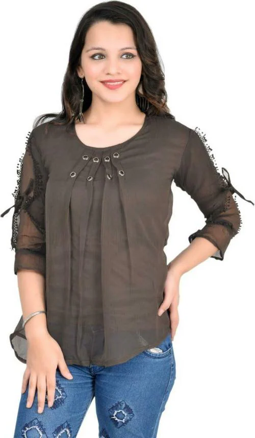 Fikroo Girls Brown Solid Cotton Blend Top 15 - 16 Y