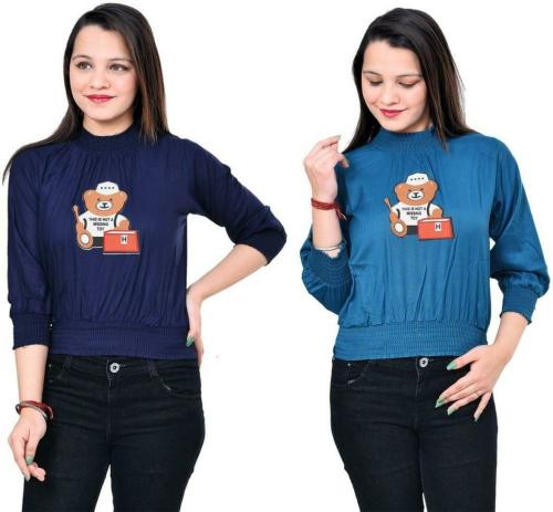 Fikroo Girls Dark Blue and Blue Printed Cotton Blend Top15 - 16 Years(Pack of 2)