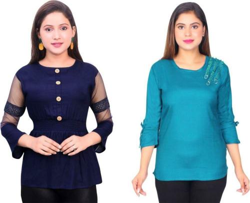 Fikroo Girls Multicolor Embroidered Cotton Blend Top 12 - 13 Years (Pack of 2)