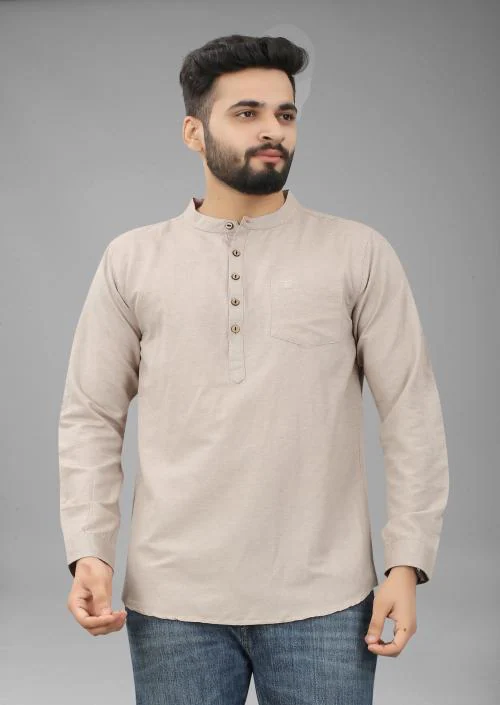 FILOSE JEANS Mens Wear Pure Cotton Cream Color Short Kurta
