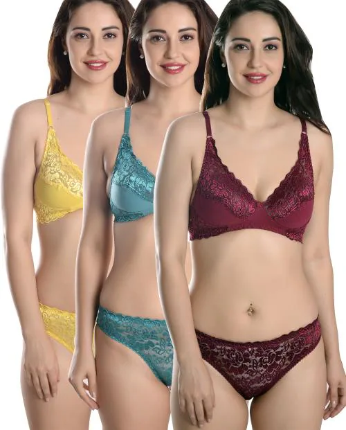 FIMS - Fashion is my style Women Multicolor Floral Cotton Blend Pack Of 3 Bra & Panty Set