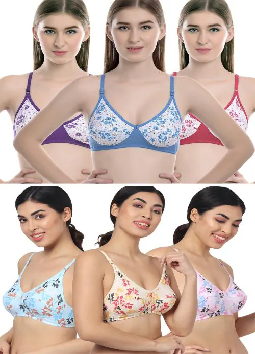 FIMS - Fashion is my style Women Multicolor Self Design Cotton Blend Pack of 6 Bra