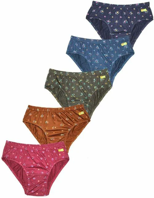 FITPLUS Women's Cotton Dark Color Printed Panties (Pack of 5)