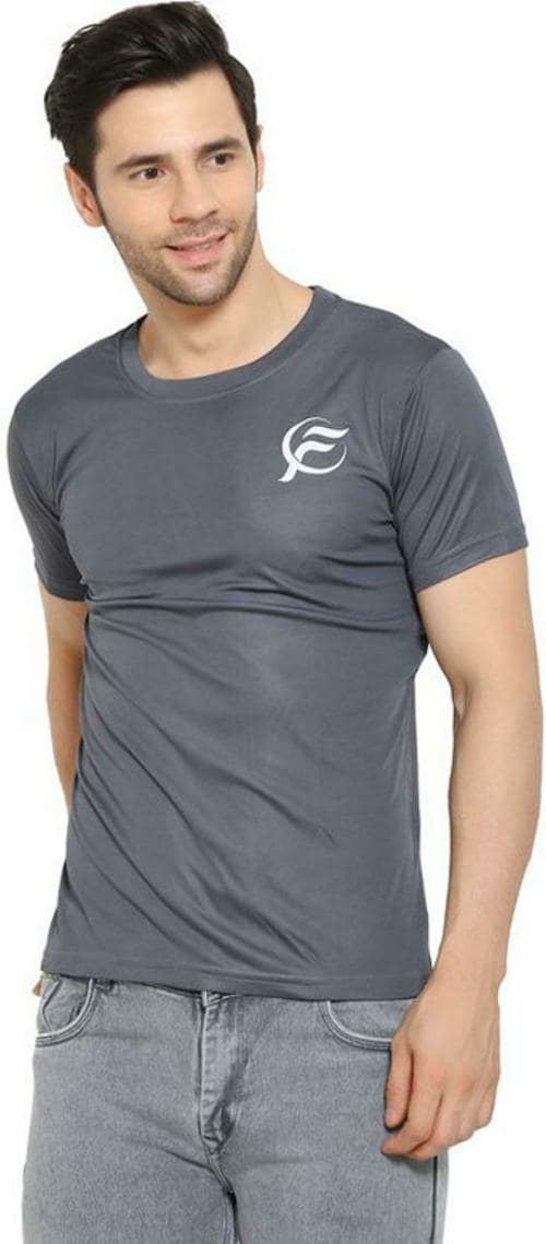 FLEXICA Men Grey Solid Polyester T-shirt (XXL)