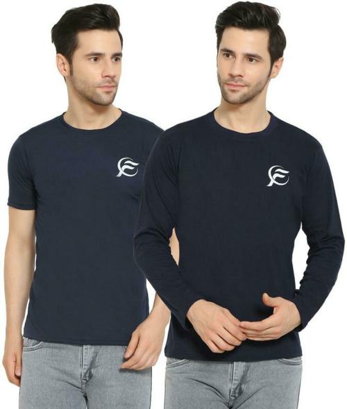 FLEXICA Men Navy, Blue Solid Polyester Pack of 2 T-shirt (XL)