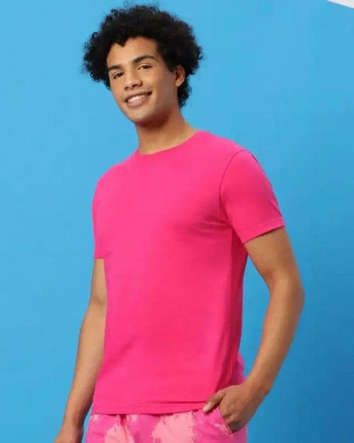 FLEXICA Men Pink Solid Polyester T-shirt (Xl)