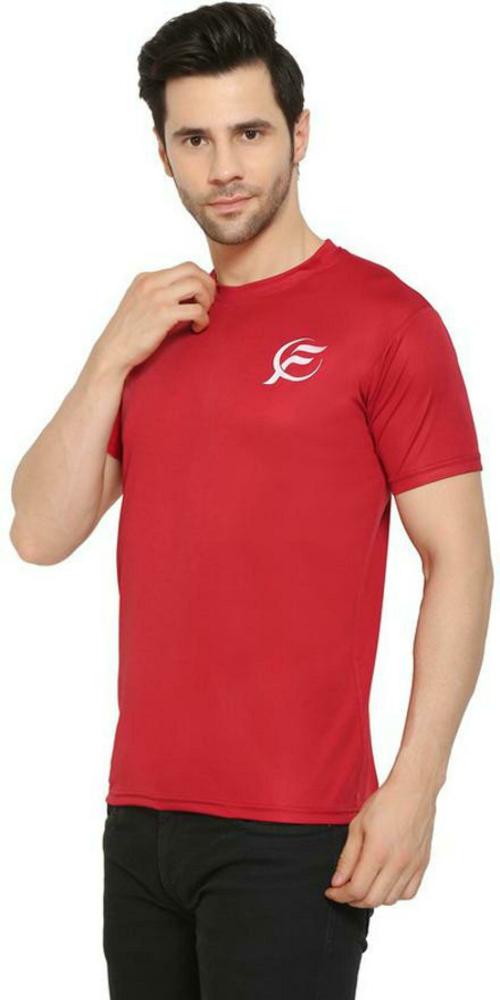FLEXICA Men Red Solid Polyester T-shirt (L)