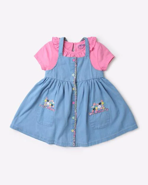 Floral Embroidered Dungaree & T-Shirt Set