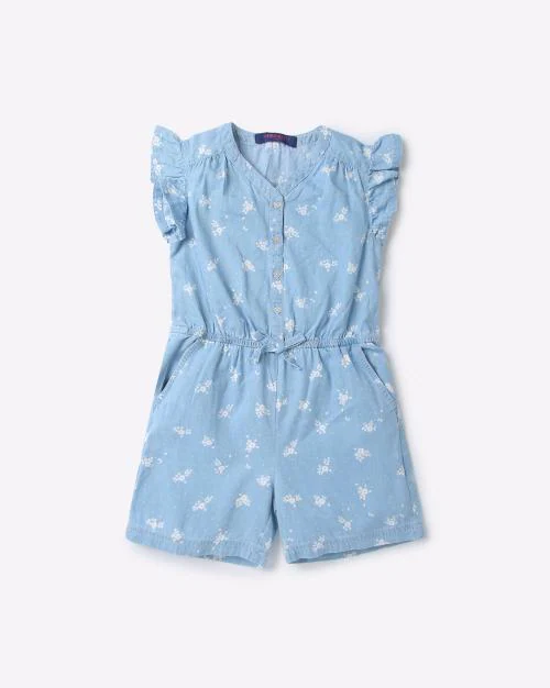Floral Print Denim Playsuit