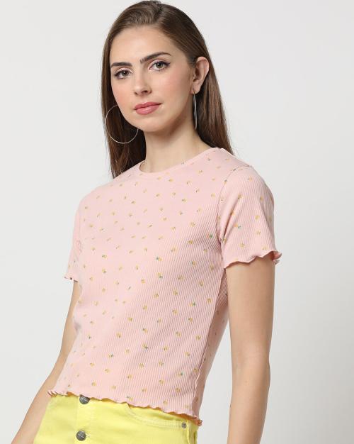 Floral Print Ribbed Top