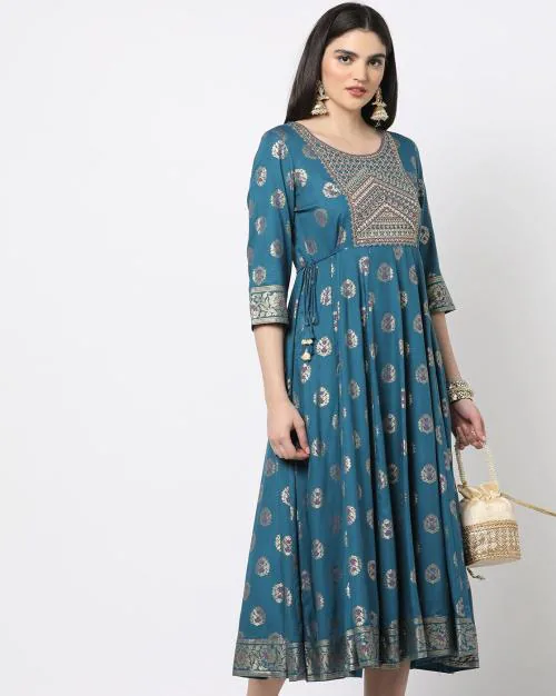 Floral Print Round-Neck A-Line Dress