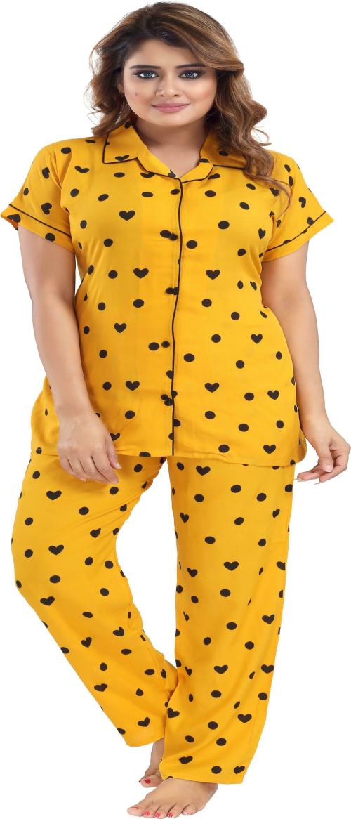 FOMTI Women Yellow Printed Cotton NightSuit (XXL)
