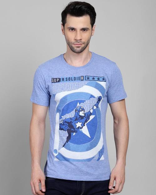 Free Authority Men Captain America Printed Blue Tshirt
