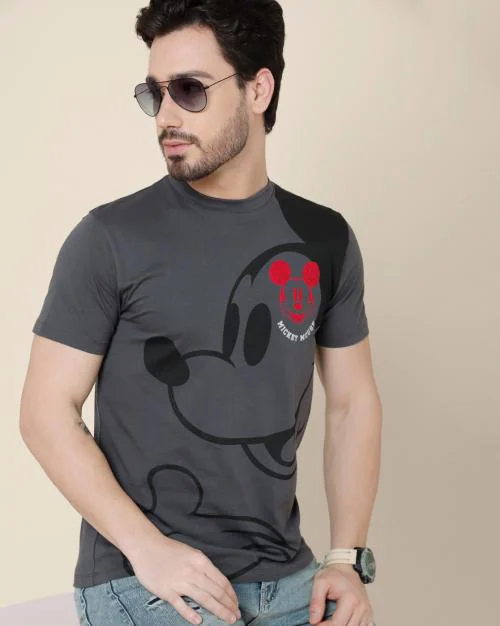 - Mickey & Friends : Red Foild and Screen Print has been professionally printed to ensure long-lasting print quality .Pair this fashionable and comfy half sleeves tee with jeans, trousers, and joggers for the perfect casual, evening or party wear look, and never go out of style. Note - Product color may slightly vary due to photographic lighting sources or your monitor settings