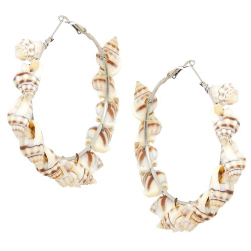 Fresh Vibes Brown Kodi Faux Sea Shell Design Large Round Hoops Earrings for Girls - Fancy & Trendy Casual & Party Use Brown Shankh Circle Loop Earings for Girls