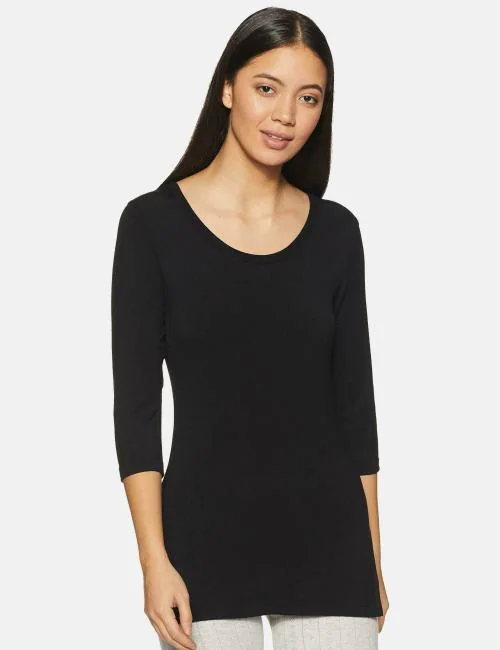 Fruit of the Loom Women Black Solid Acrylic Blend Pack Of 1 Thermal Top Long Sleeve