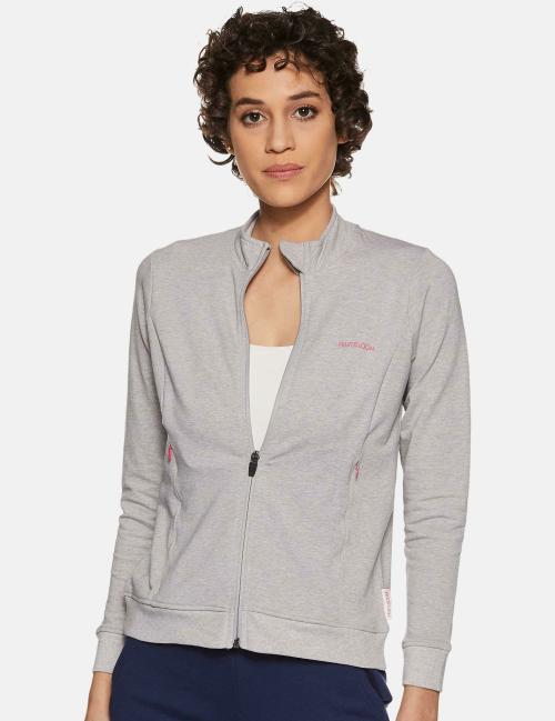 Fruit of the Loom Women Grey Melange Solid Cotton Blend Pack of 1 Sweatshirt