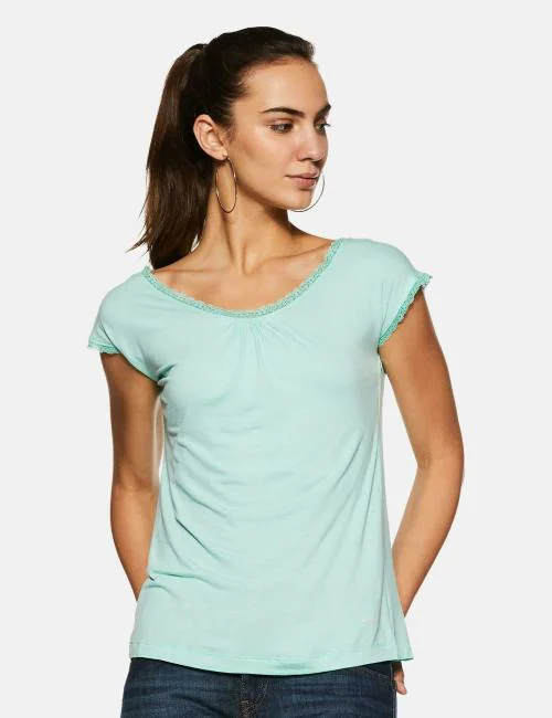 FRUIT OF THE LOOM Women's Light Blue Solid Viscose Pack of 1 Round Neck T-shirt