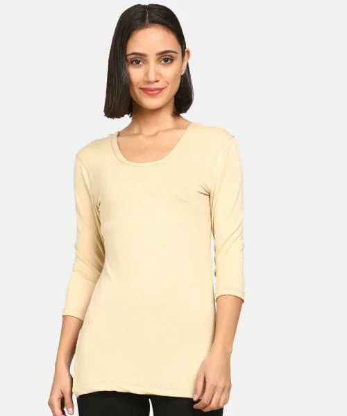 Fruit of the Loom Women Tan Solid Acrylic Blend Pack Of 1 Thermal Top Long Sleeve