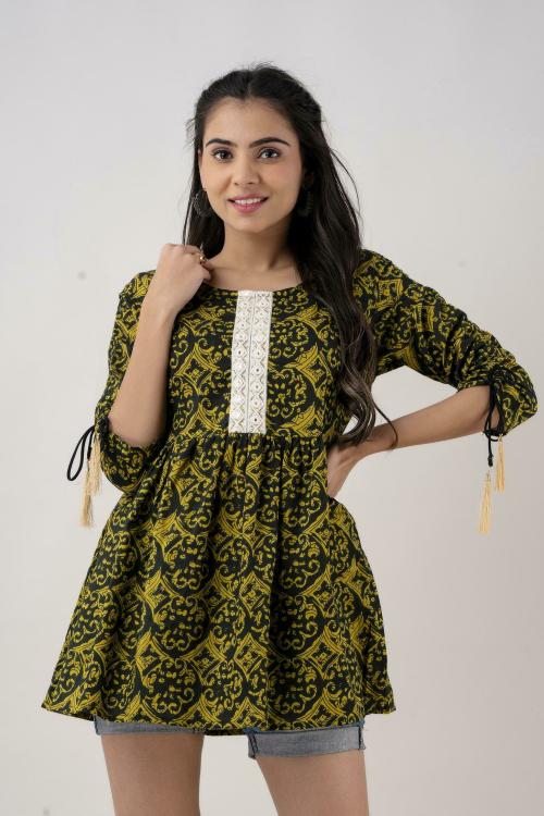 ftDiva Women Cotton Printed Flared Tunic in Green