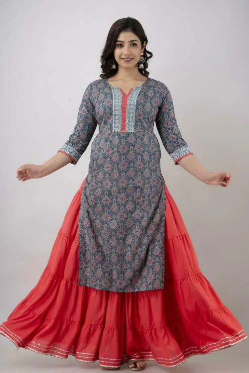 ftDiva Women Cotton Printed Straight Kurta in Light Blue