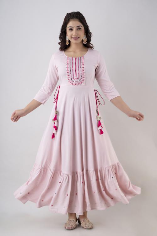ftDiva Women Embroidered Anarkali kurta in Pink