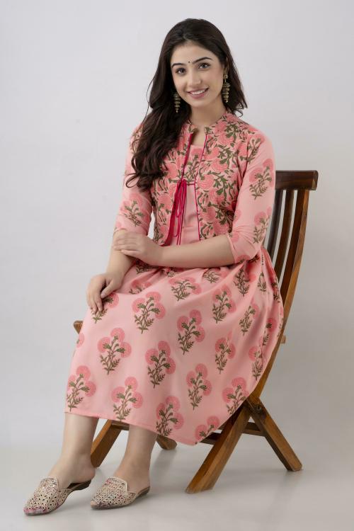 ftDiva Women Rayon Jacketed Anarkali kurta in Pink