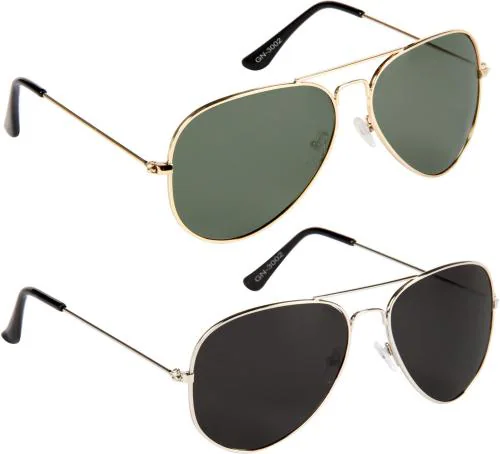Gansta Aviator Full-Frame Grey Green Sunglasses ,Boys And Girls ,Pack Of 2(GN3002GldG15-GN3002SilB2)
