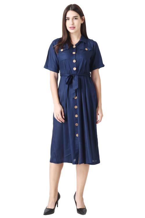 GENEALO present This Casual Rayon Dress has a Code Collar, Half Sleeves, knee Length and made with Good quality rayon fabric. This button down rayon Dress can be teamed with low ankle-length boots and heels to flaunt an ever-trendy look.
