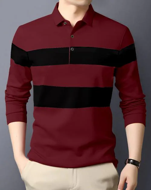 Gespo Black & Mastard Colorblocked Polo Neck Full Sleeve Casual T-Shirt