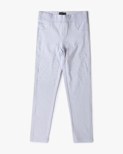 Girls Embellished Mid-Rise Skinny Fit Jeggings
