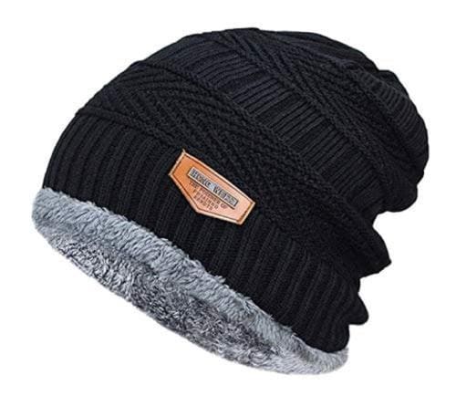GLAMAXY Imported Unisex Snow Proof Woolen Cap Inside Fur Warm Winter Soft Beanie Cap(Black).
