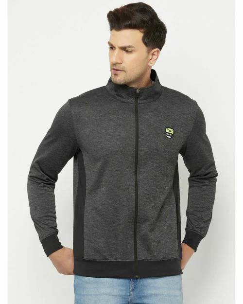 Glito Charcoal & Black Striped Stretchable Regular Fit Sports Wear Jacket/Upper For Men