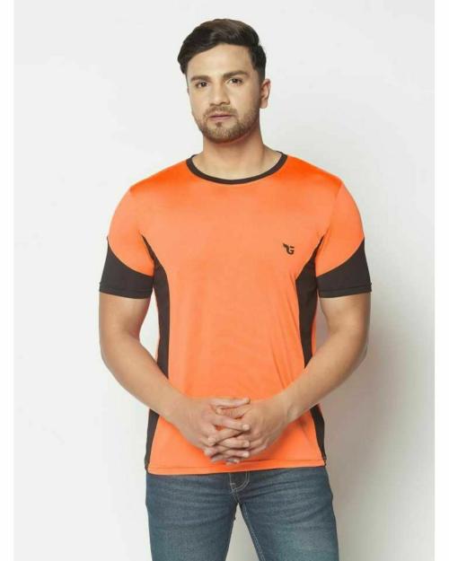 Glito Color Blocked Orange & Black Half Sleeves Round Neck T-shirts For Men's