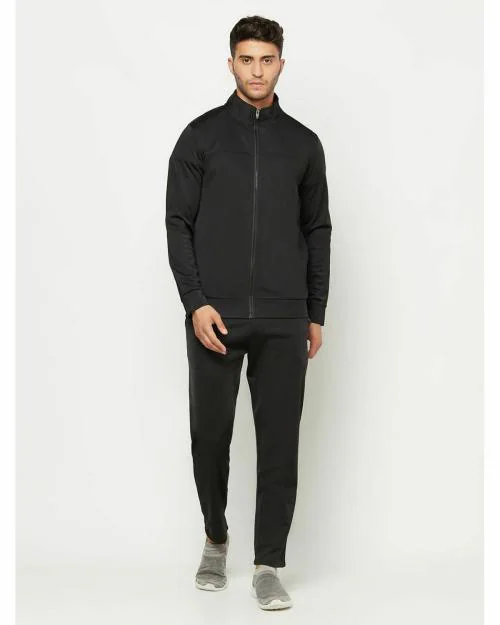 Glito Men's Solid Black With Stretchable Regular Fit Sports Wear Track Suit