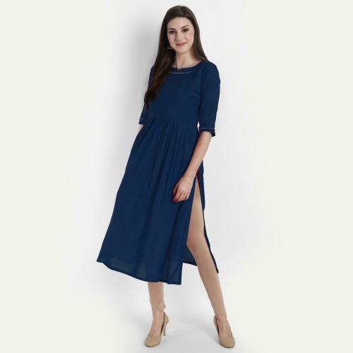 Globon Impex Women Blue Solid Viscose Kurta (M)