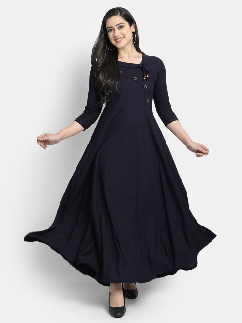 Globon Impex Women Blue Solid Viscose Kurta (S)