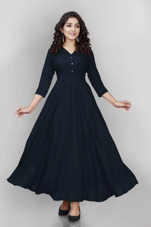 Globon Impex Women Blue Solid Viscose Kurta (XL)