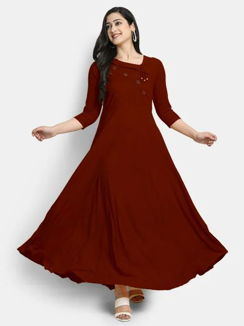 Globon Impex Women Maroon Solid Viscose Kurta (L)