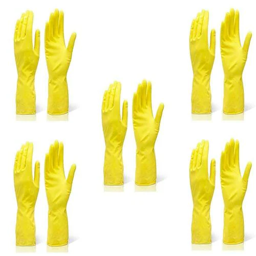 Glorial Star Professional Reusable Washable Waterproof rubber Cleaning Gloves PVC Dish washing Gloves, Cotton Flock Liner, Non-Slip Household hand Gloves