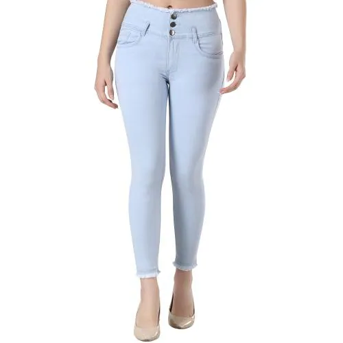 Glossia Fashion Light Blue High Waist Jeans For Women Ankle Length |Slim Fit Jeans Stretchable Denim
