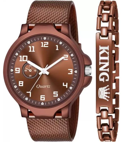 Goldenize fashion Analogue Brown Dial with King Bracelet Birthday Gift Premium Watch for Boys Men's & Boy's Combo Watches
