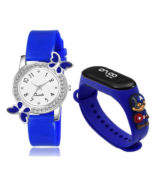 Goldenize fashion Blue Butterfly Analog Diamond Dial with Digital Dial Waterproof Stylish and Fashionable Wrist Smart Watch LED Band for Kids 3D Colorful Cartoon Character for Women& Girls (Pack of 2)
