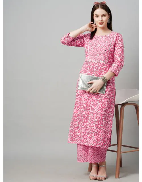 GoSriKi Women Pink Straight Printed Kurta with Palazzo